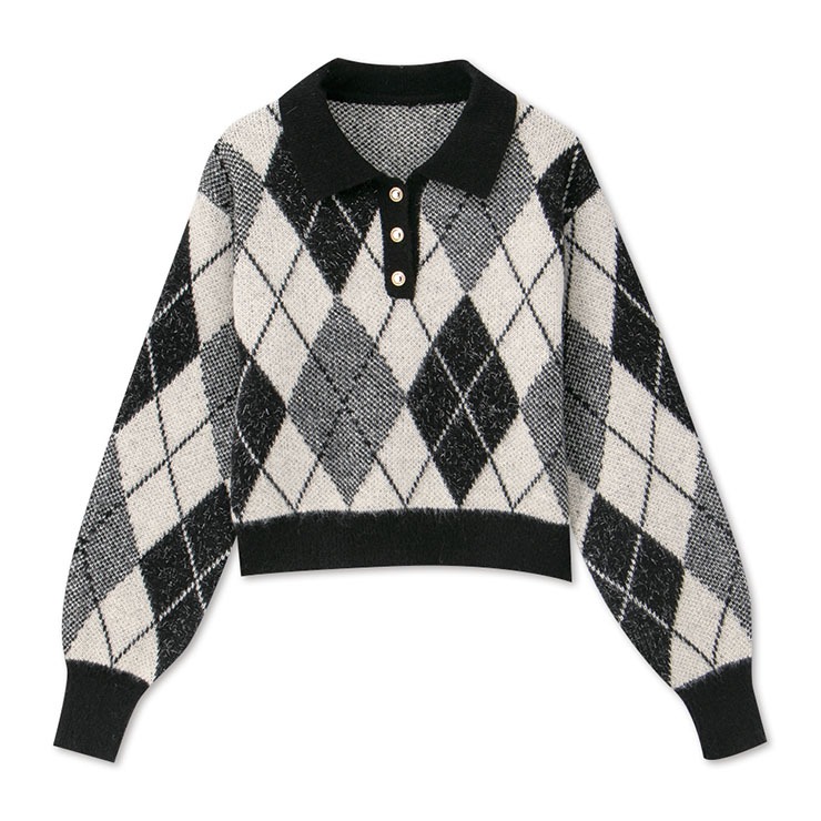 クラシカルなアーガイル柄に襟つきデザインが映える、トレンド感あるプルオーバー。