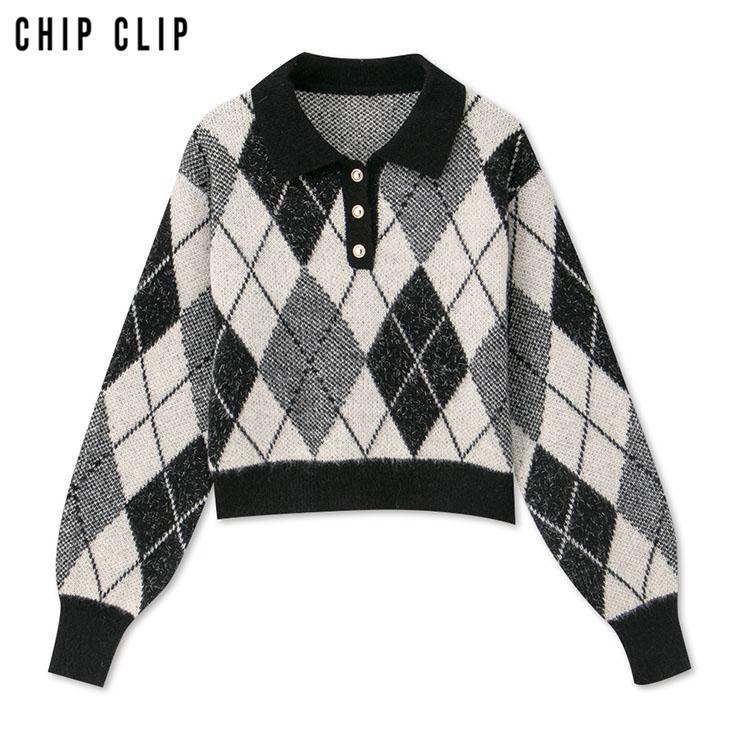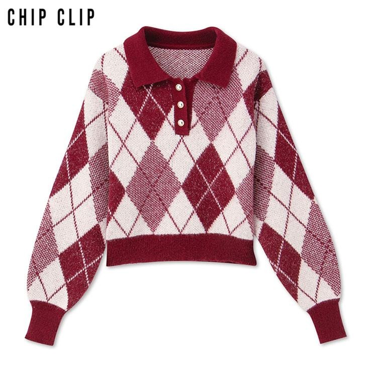 レディース 襟付アーガイルニットプルオーバー(CHIP CLIP)