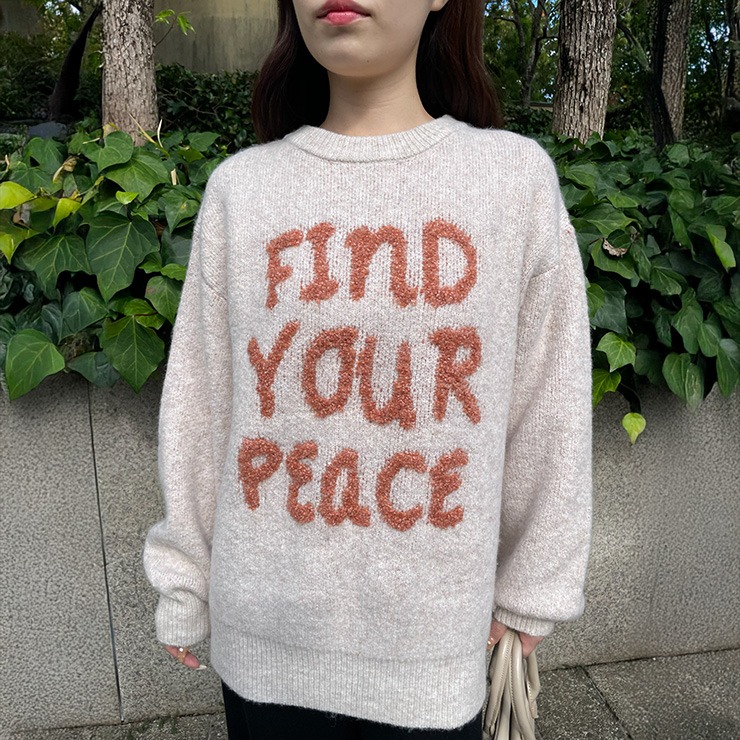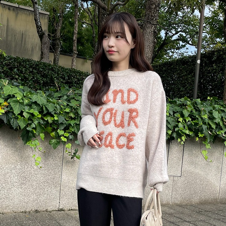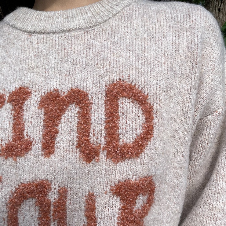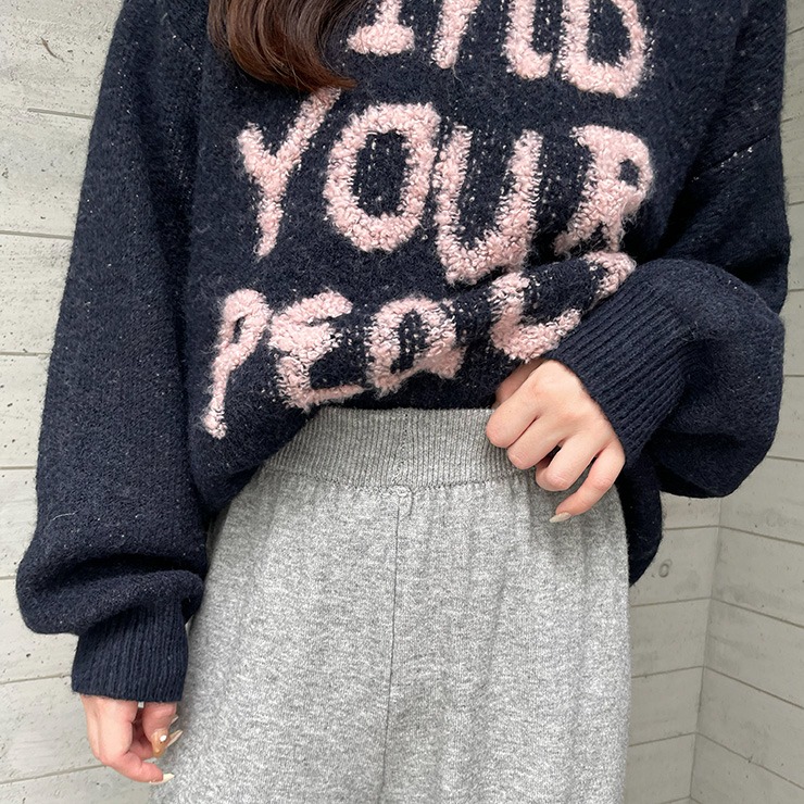 ふんわり柔らかな編地に、ループ編みのロゴが映えるニットプルオーバー。