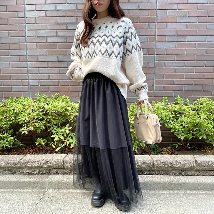 やわらかな風合いのニットに、ジャカード柄を施したプルオーバー。