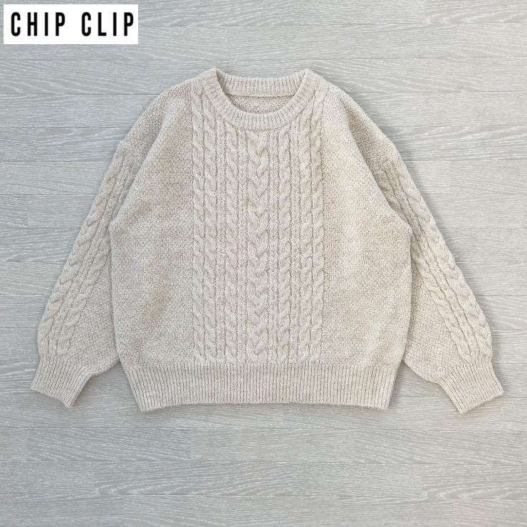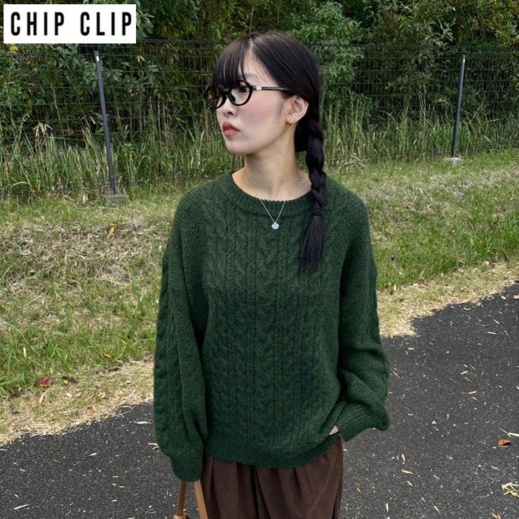レディース ケーブルニットプルオーバー(CHIP CLIP×ぽんづ)