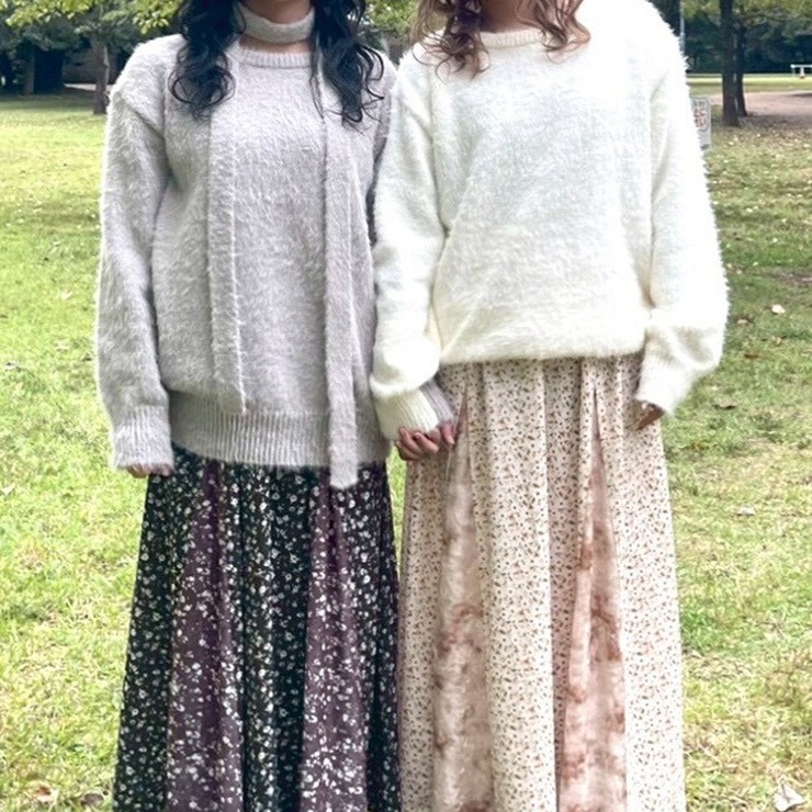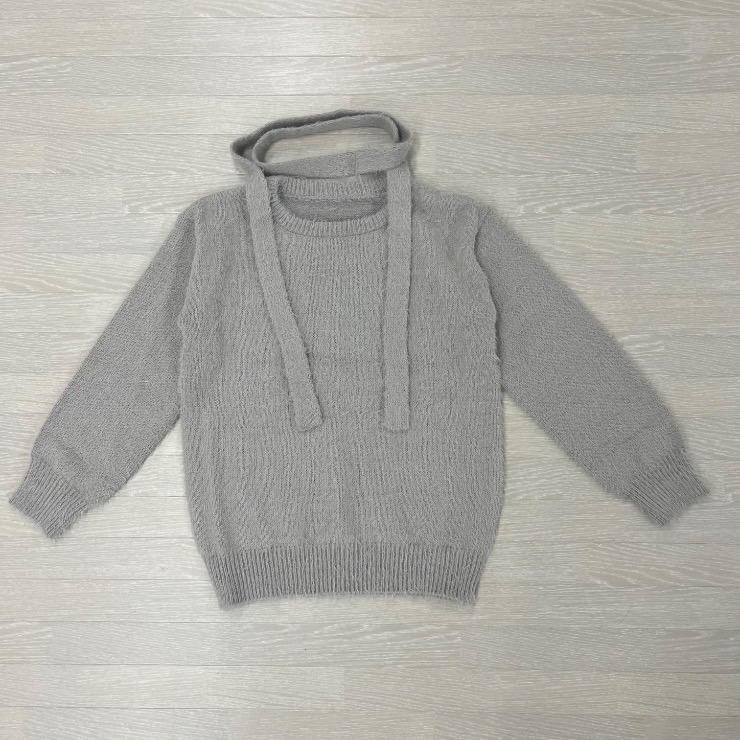 チョーカーのように首元に巻き付けるデザインが特徴のニットプルオーバーです。