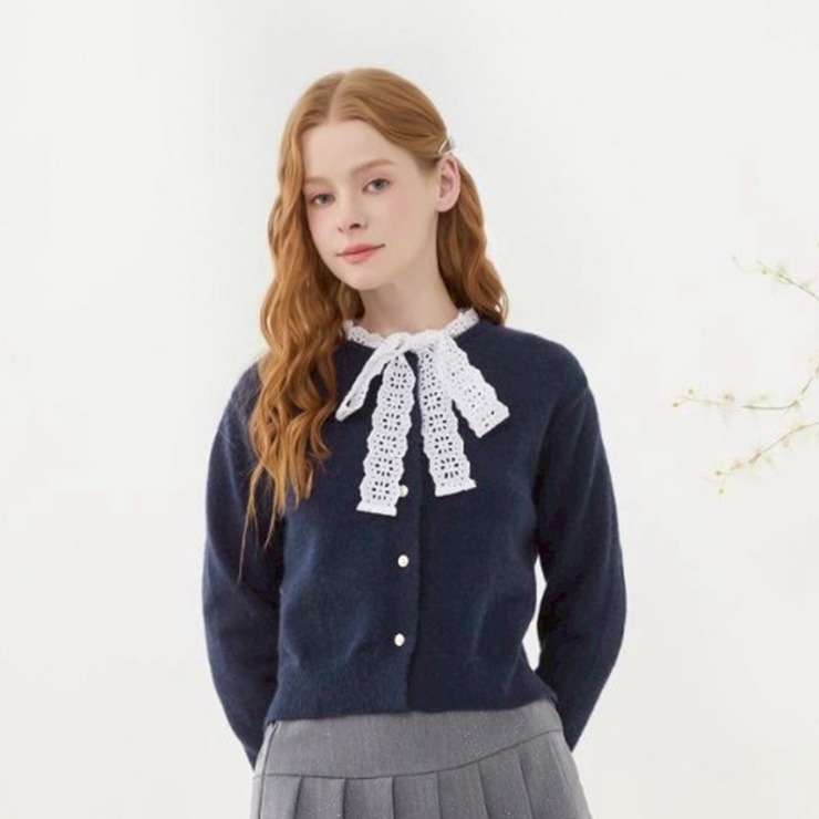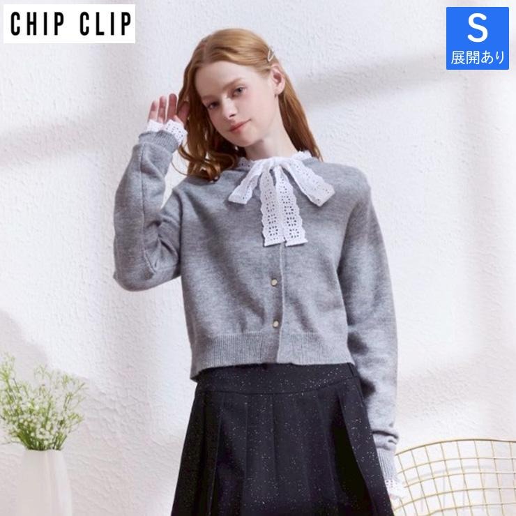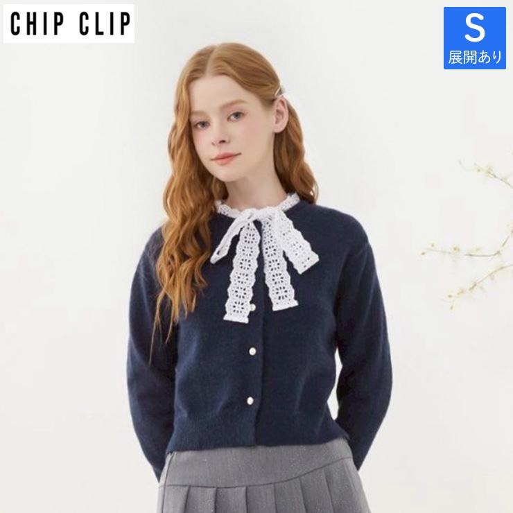 レディース ボウタイ風ニットカーディガン(ria×CHIP CLIP)