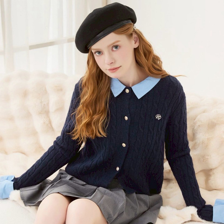 レディース フェイクレイヤードニットカーディガン(ria×CHIP CLIP)