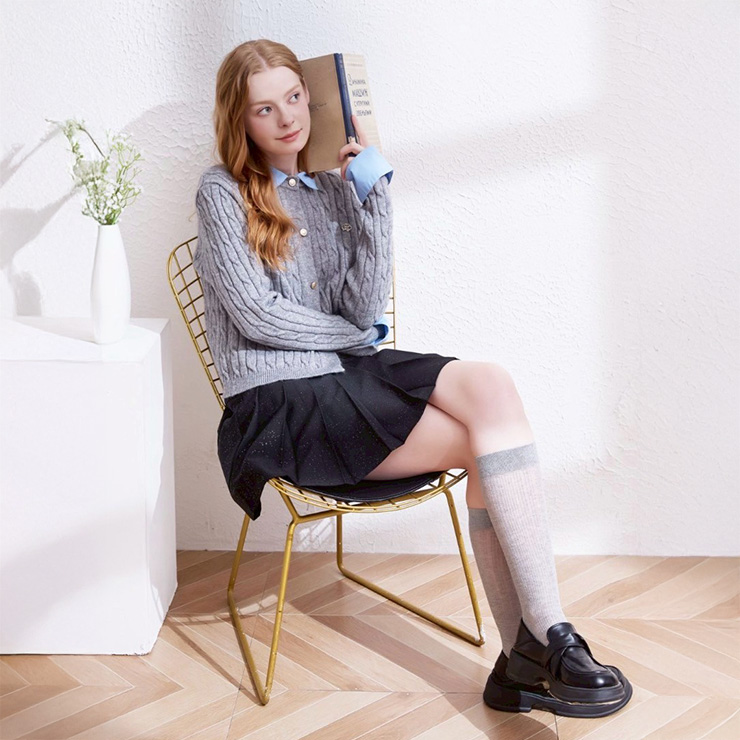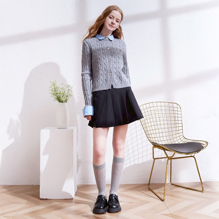 胸元にはゴールドのロゴがはいっており、スカートとの相性抜群です♪