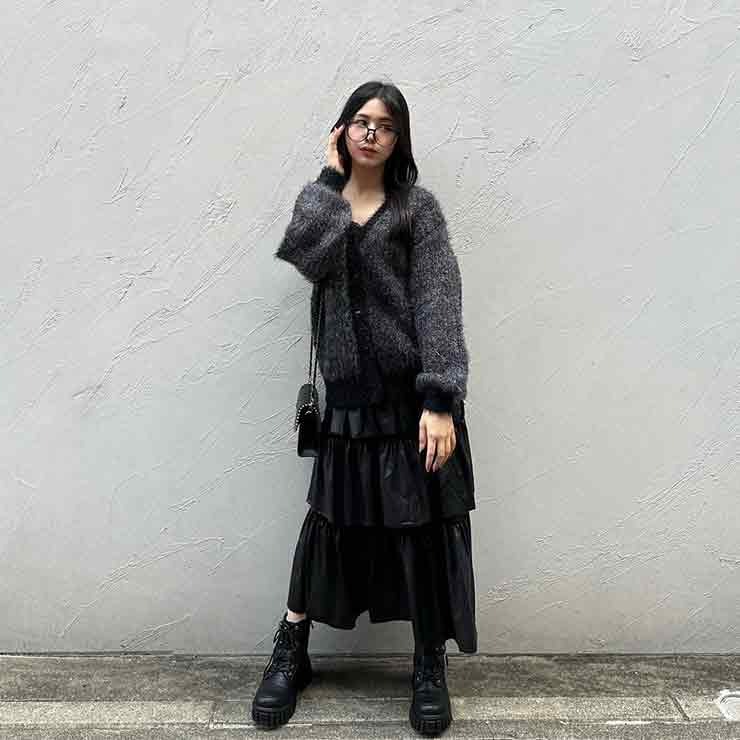 毛足の長い光沢感のあるシャギー素材がポイントのカーディガンです!