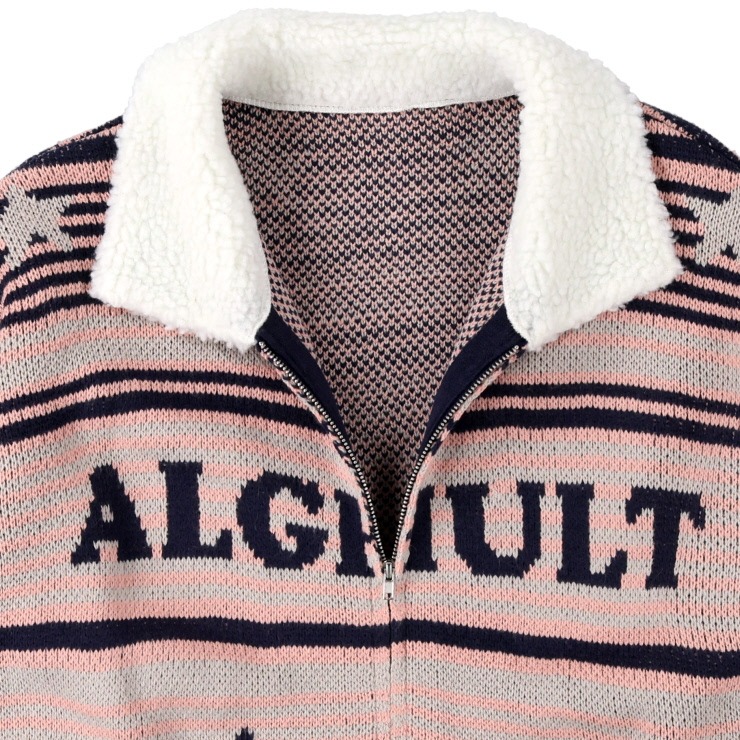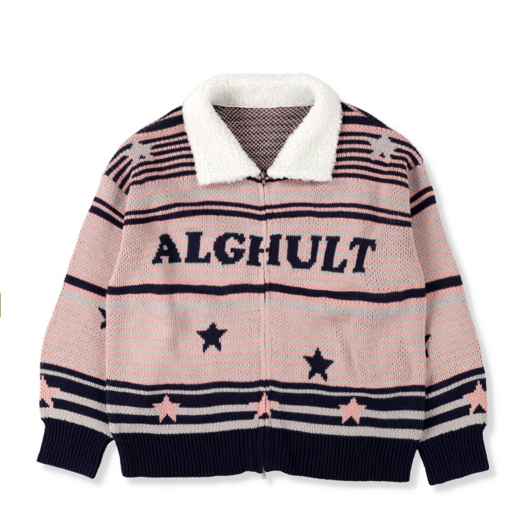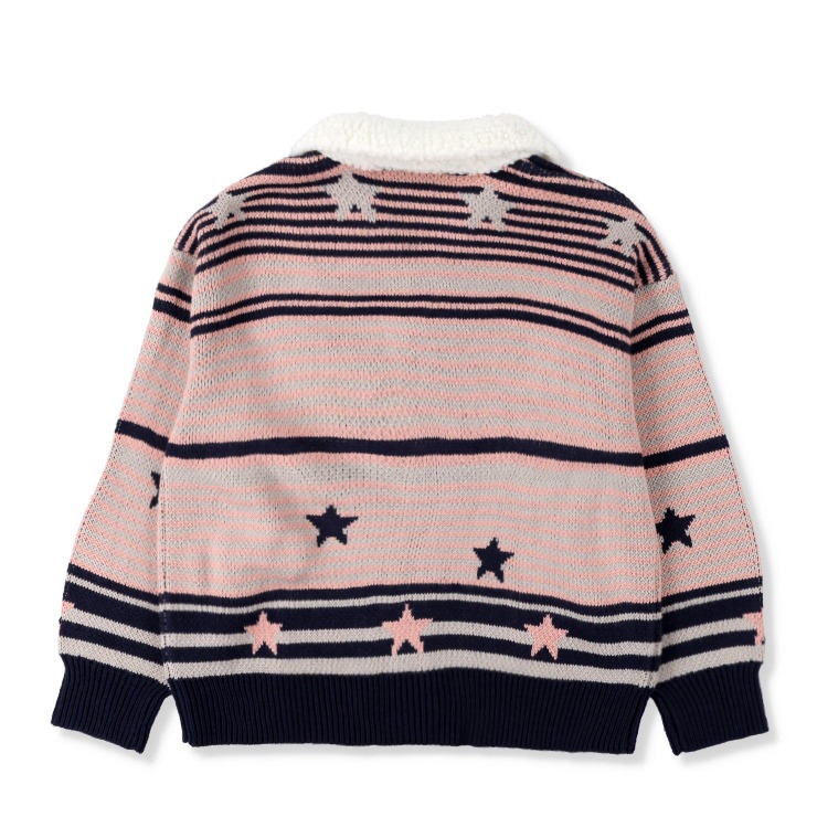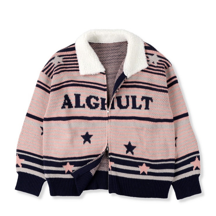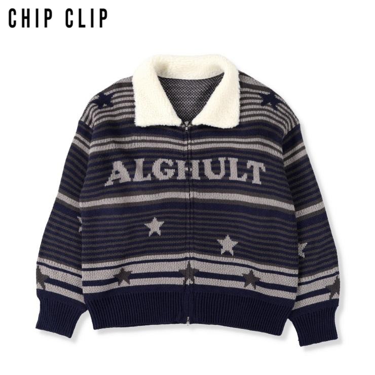 星柄とボーダーを組み合わせた、遊び心あふれるジップアップニット。