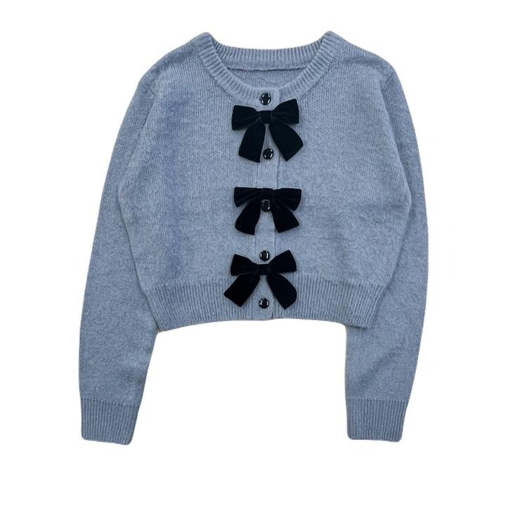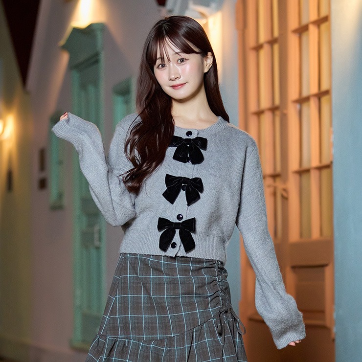 リボン付きのニットカーディガンです。