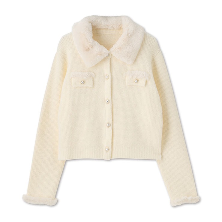 ファー襟がついたニットジャケットです。