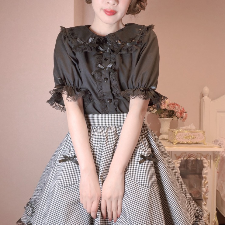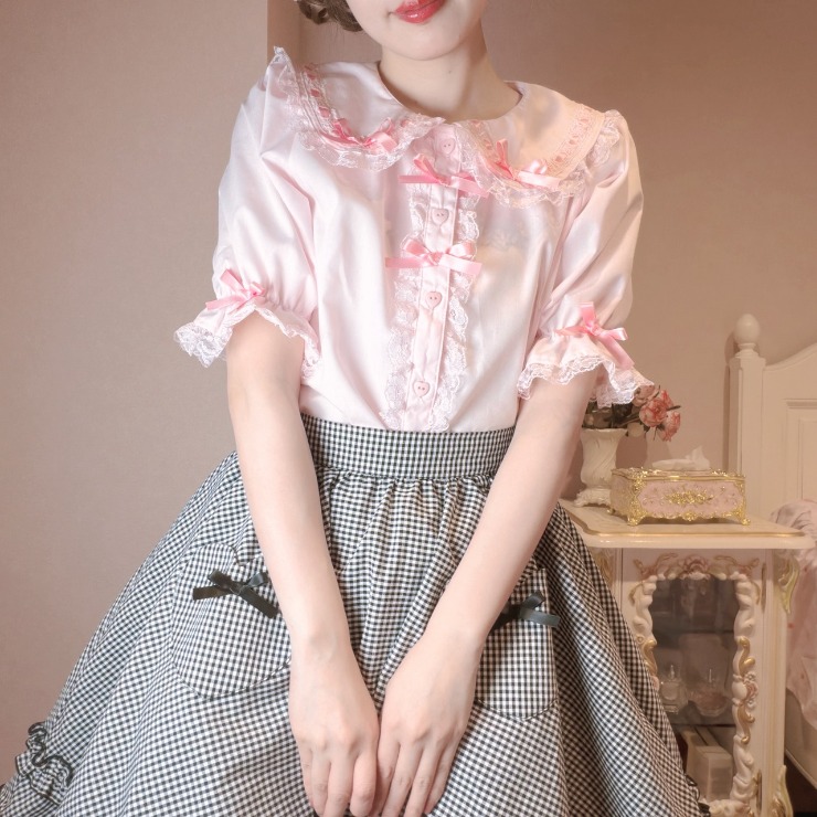 丸襟やレース、りぼん、ハート釦の装飾で抜かりなく可愛い◎