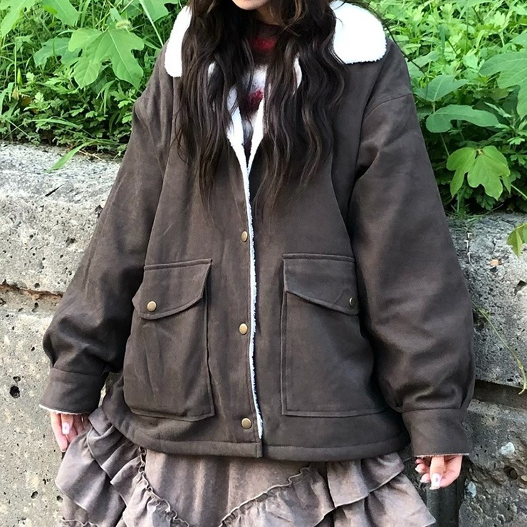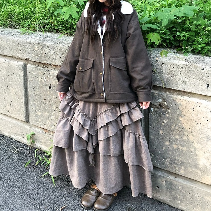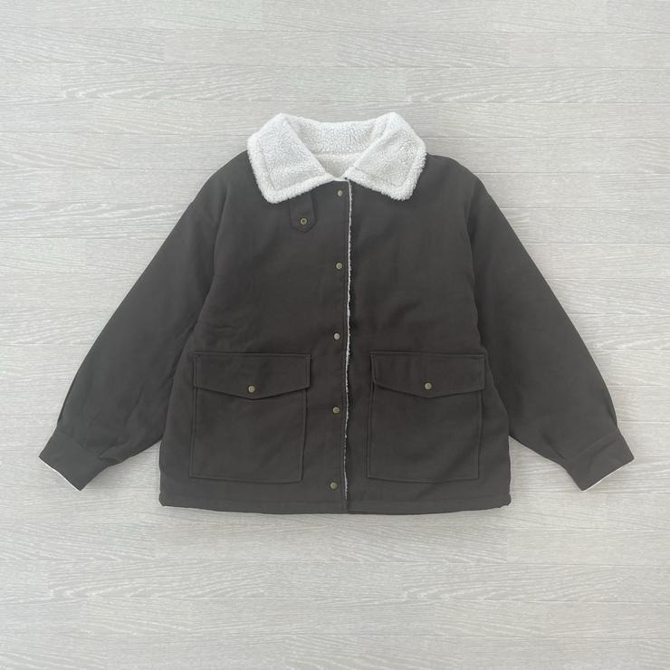 大きめのポケットと襟のボアがポイントで、インナーのボリュームを選ばない大き目なシルエットのブルゾンです。