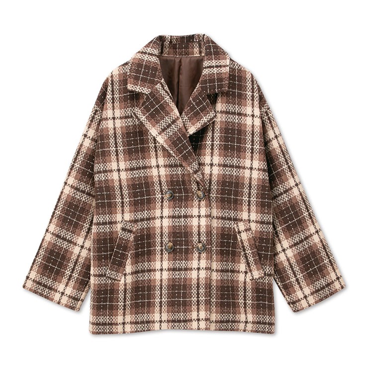 ビッグシルエットとトレンドのチェック柄が可愛いテーラードジャケット。