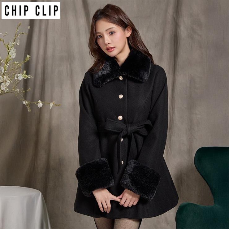 レディース ファー付きリボンコート(Kim Sua.×CHIP CLIP)