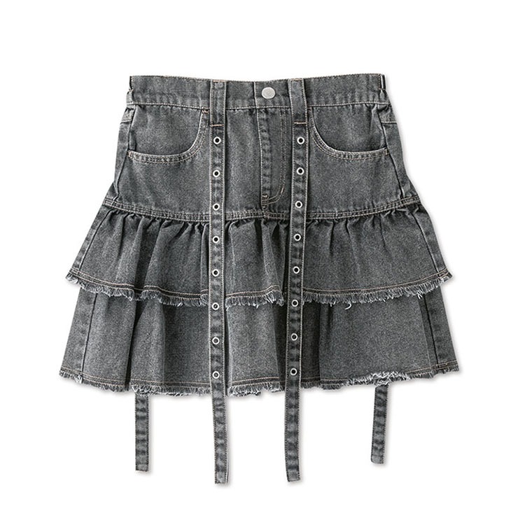 レディース【S~L】 デニムフリルミニスカート(CHIP CLIP)