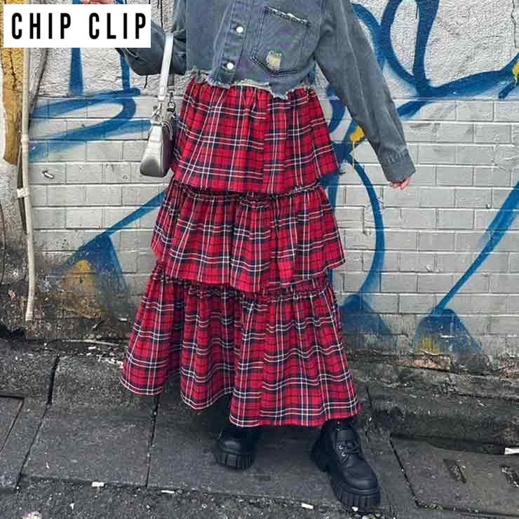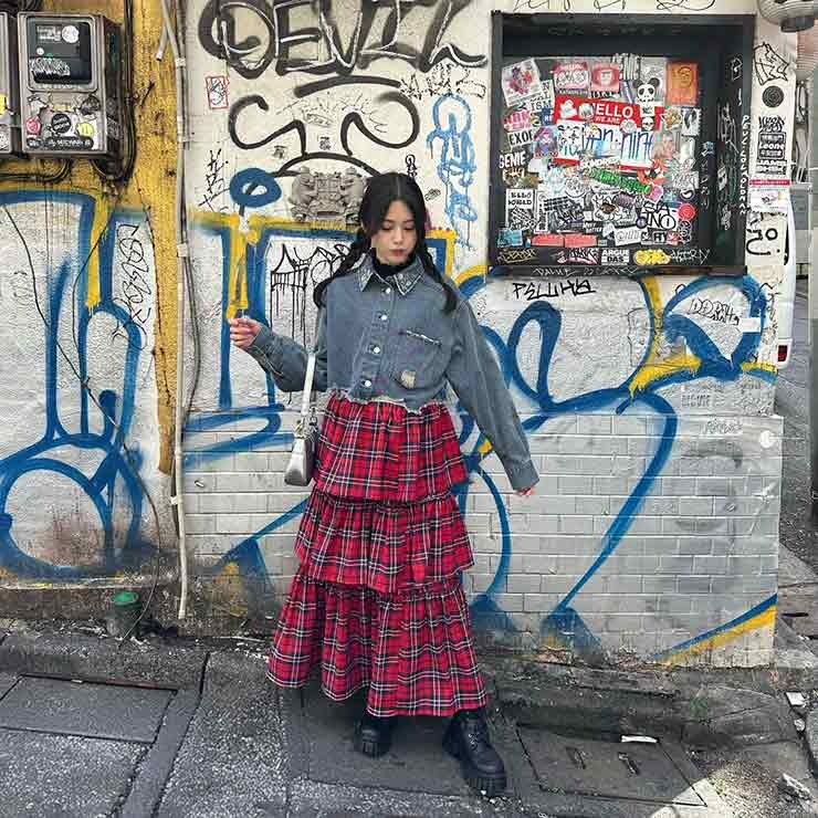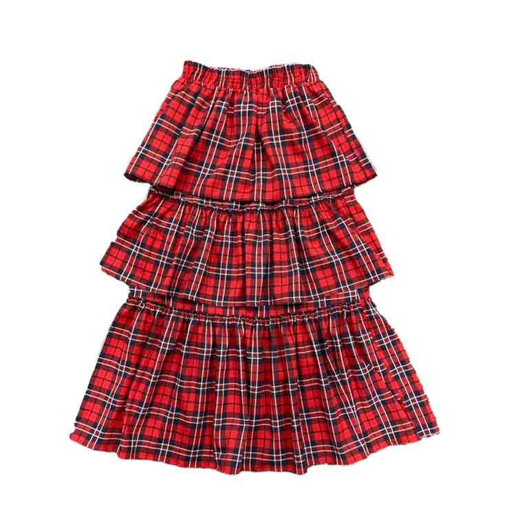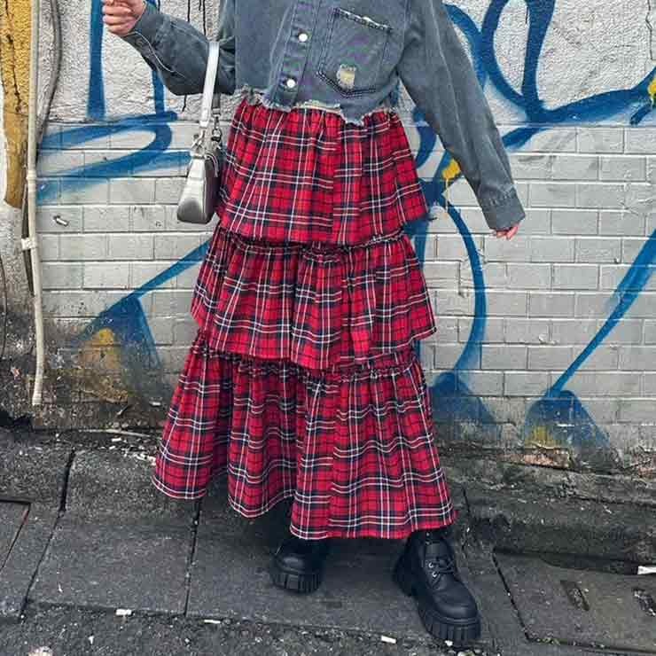 ロンドンを思わせる大胆なチェック柄が目を惹く、3段フリルのティアードスカートです。
