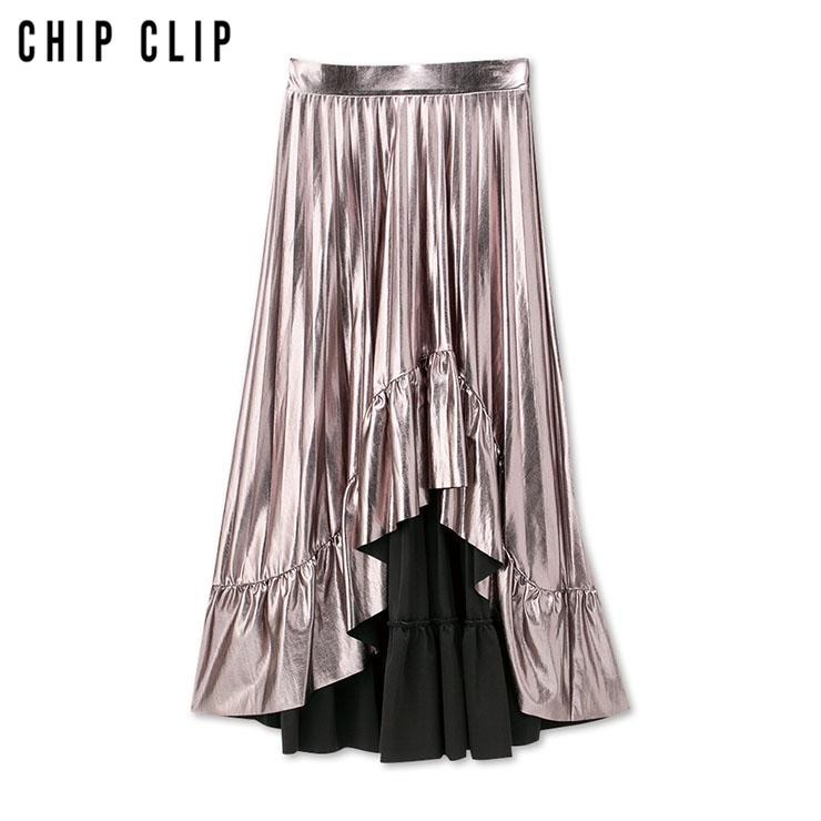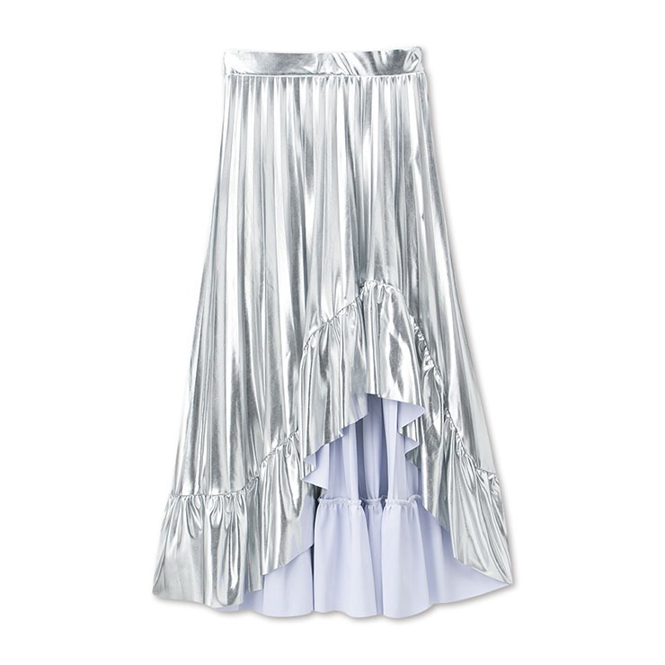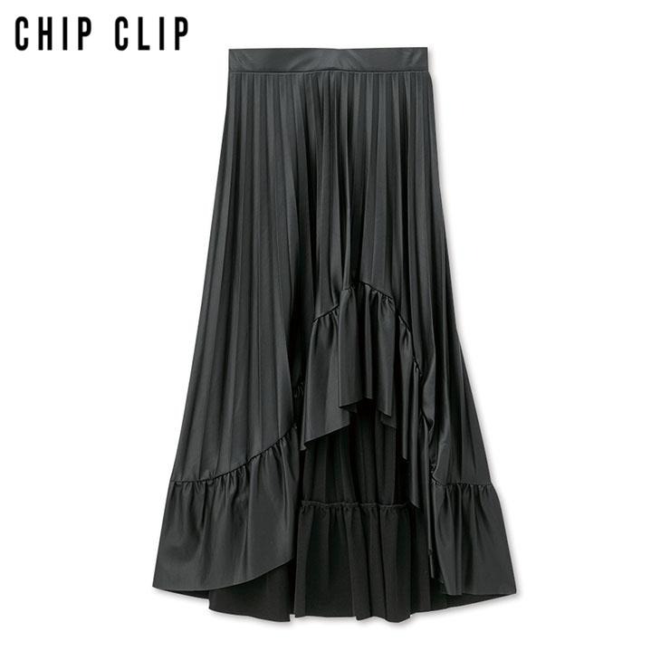 裾のフリル、アシンメトリーのヘムラインがポイント!プリーツ×大胆イレヘムでスタイルアップ◎