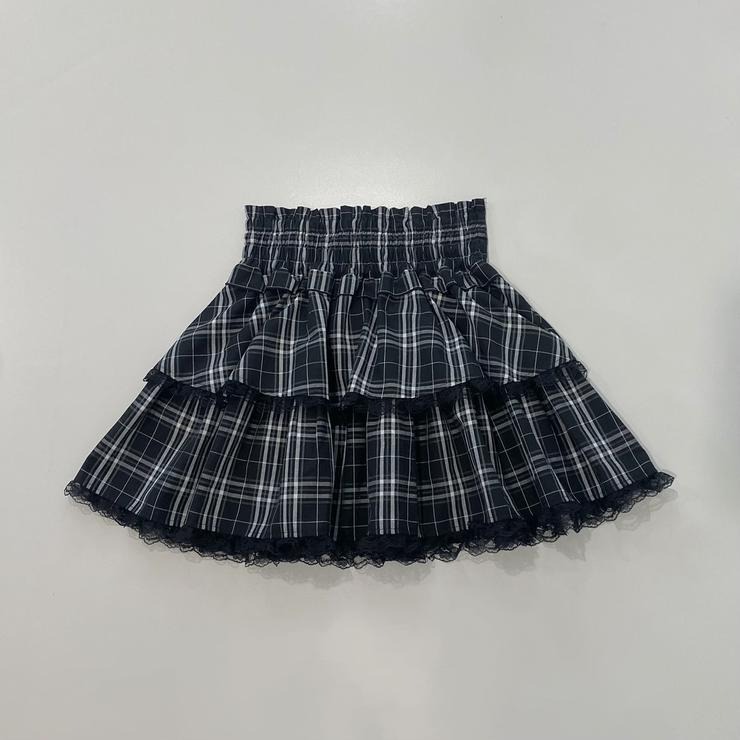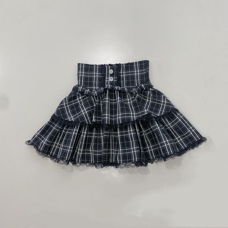 たっぷりと付いたレースやキラキラボタンがポイントのティアードスカート♪