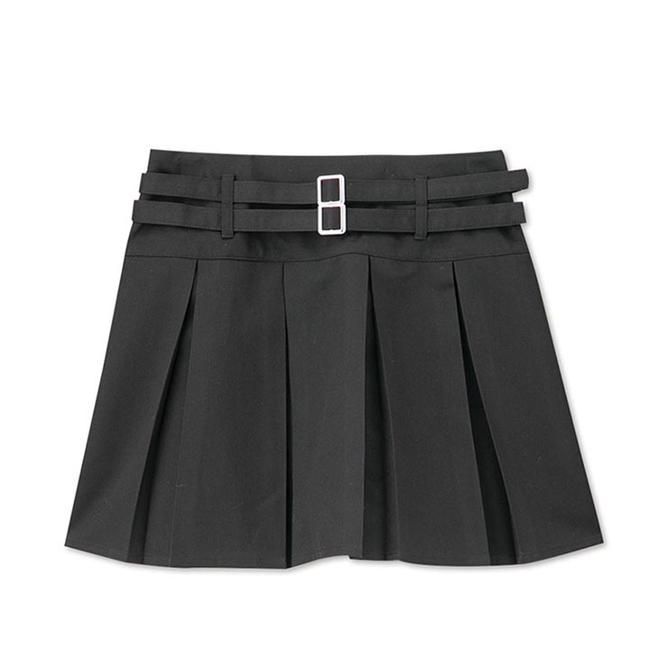 ウエストのダブルベルトが目を引くプリーツスカート。