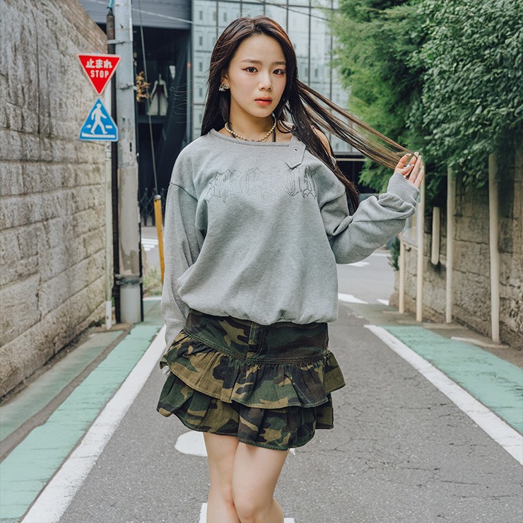 ティアードフリルがガーリーっぽさをプラスし甘辛ミックスが楽しめるアイテムです。