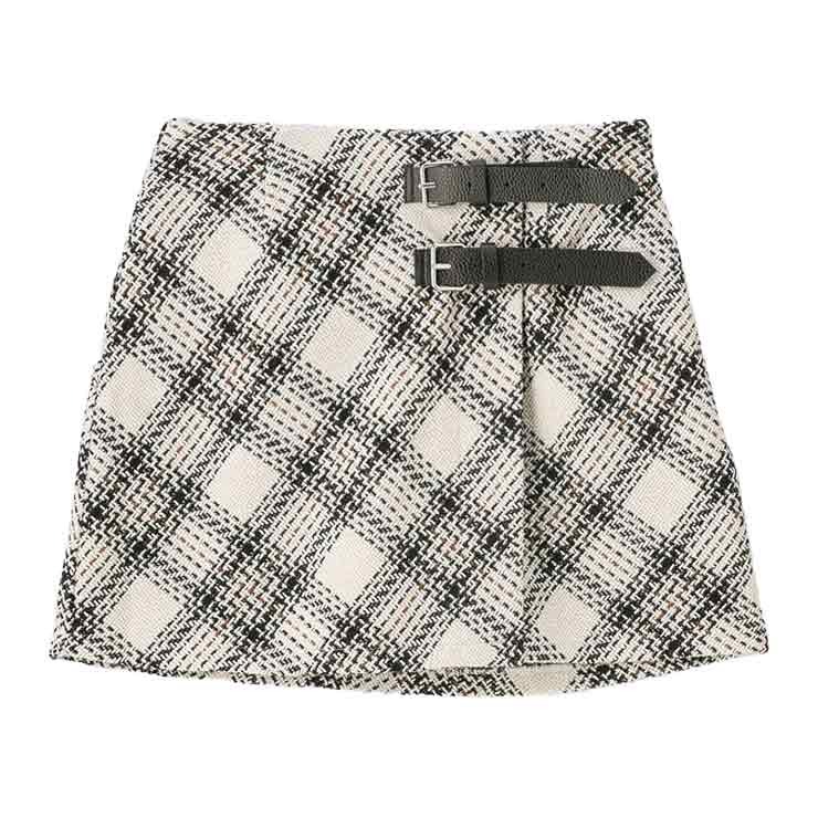 バイアスチェックにベルト付きが可愛いスカート。