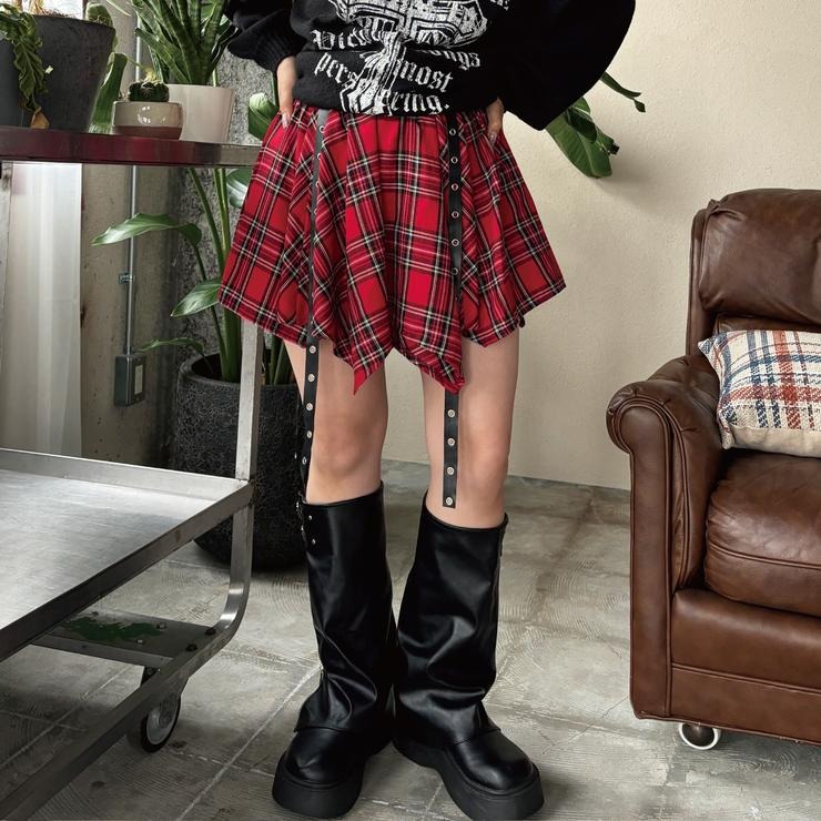 裾はイレヘムで合皮ベルトストラップを垂らしてポイント満載☆