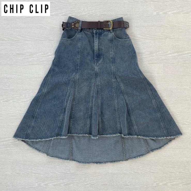 レディース ベルト付きデニムスカート(CHIP CLIP×はる)