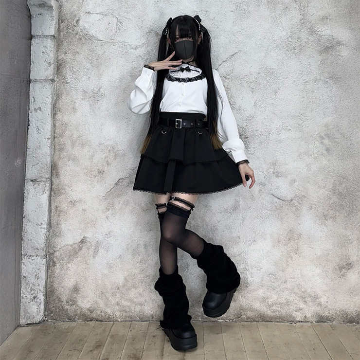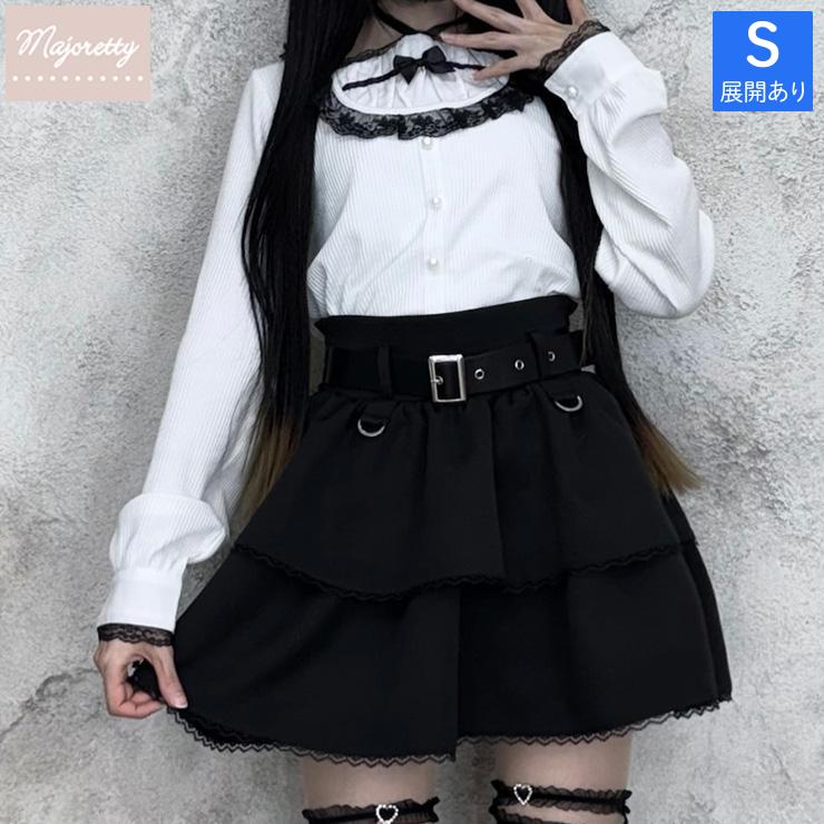 エッジの効いた合皮ベルトにふんわり広がったティアードスカートがダークかわいい印象に♪