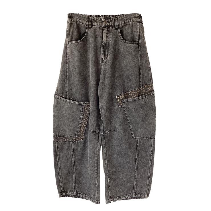 ポケット部分にポイント使いしたヒョウ柄がさりげないアクセントになるデニムカーブパンツです。