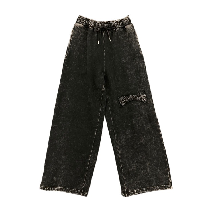 ロゴ貼り付けが特徴のピグメントパンツです。