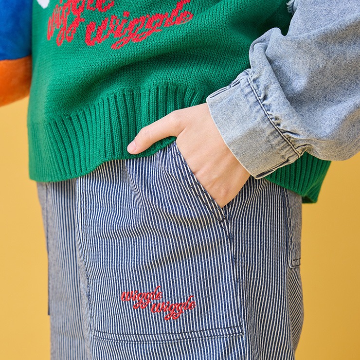 ワークテイストのヒッコリーデニムに、wiggle wiggleらしいワッペン&プリントを散りばめたスペシャルな1本。