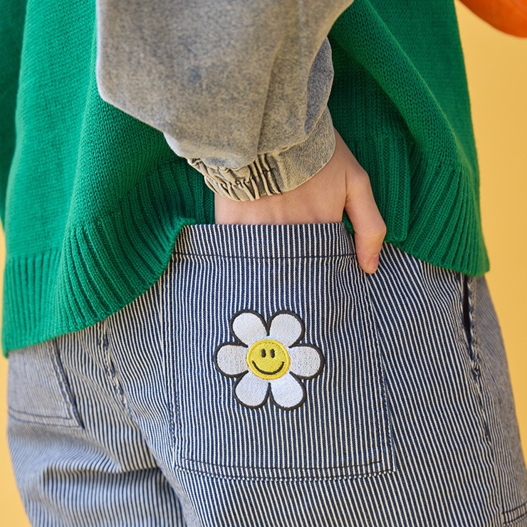 ベーシックなのにどこかポップで、穿くだけで気分が上がるデザインパンツです。