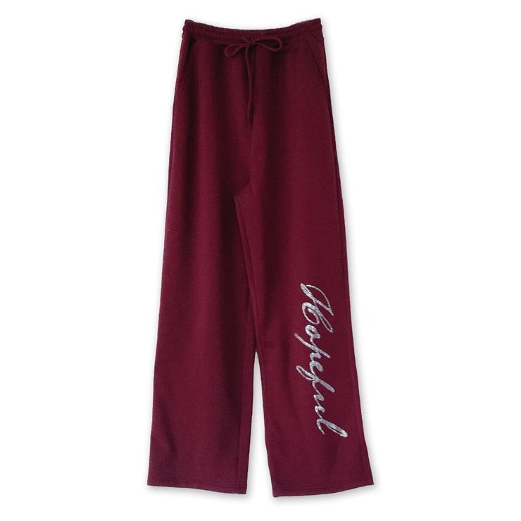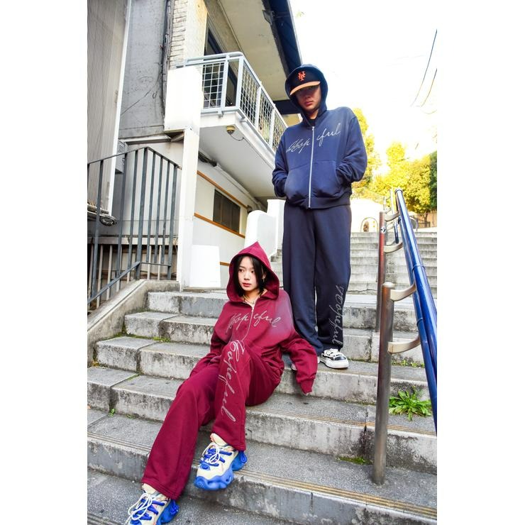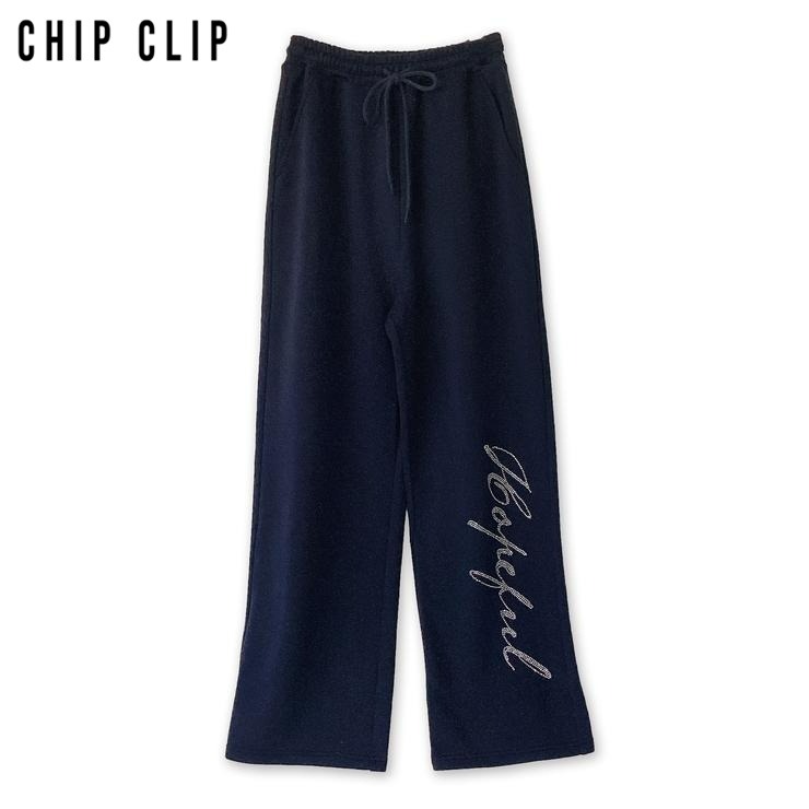 フロントのラインストーンロゴが印象的なMizukiコラボのワイドパンツ。