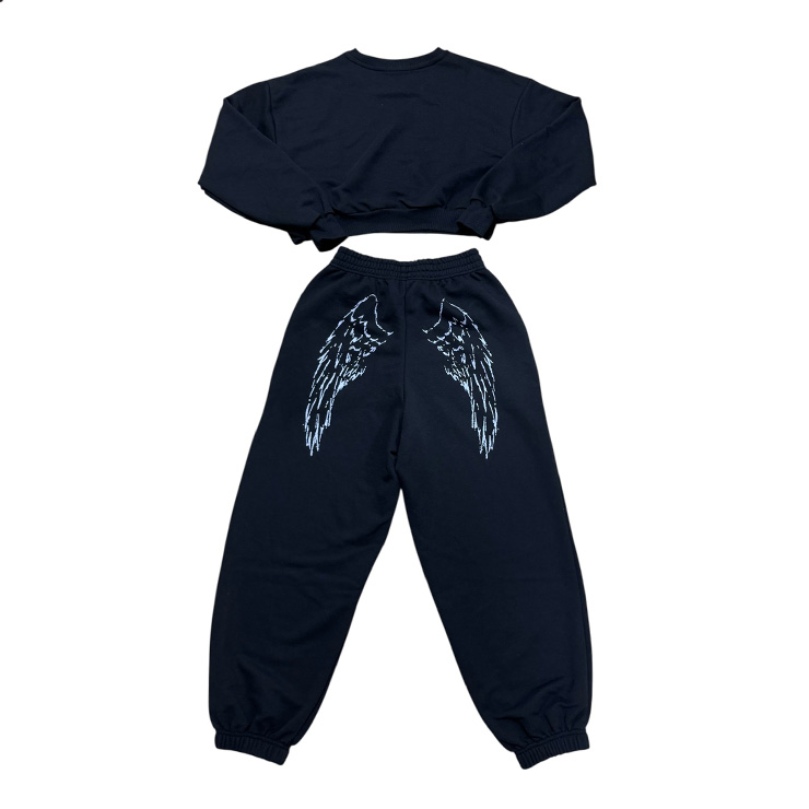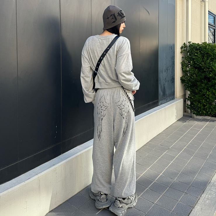 ジョガーパンツの後には羽のプリントがされているのが特徴です♪