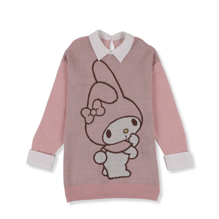 襟と袖が異素材のマイメロディのジャガードニットが登場。