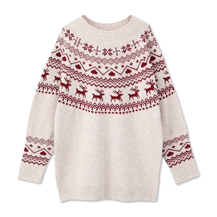 冬らしいノルディック柄が目を惹くニットミニワンピ。