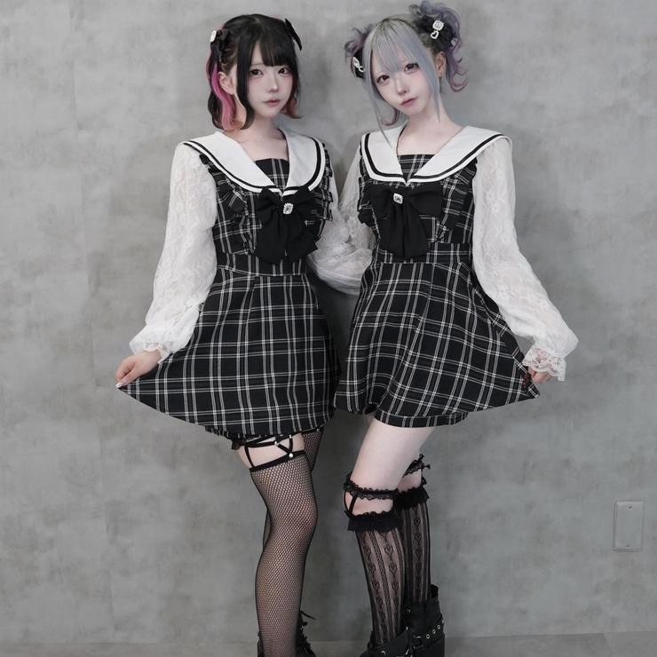 異素材MIXで、奥行きある表情を作り地雷系らしい高級感を演出。