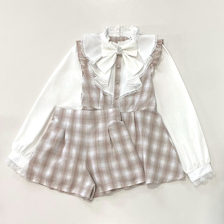 胸元のレース付きラッフルがポイントの、セットアップ!