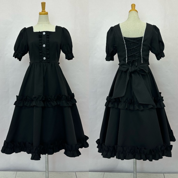 ボリュームたっぷりスカートのゴスロリワンピース。