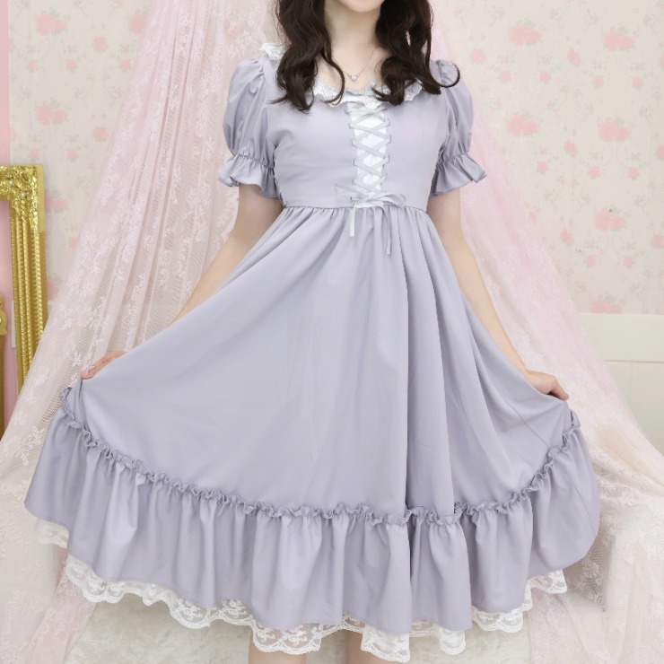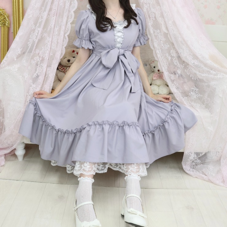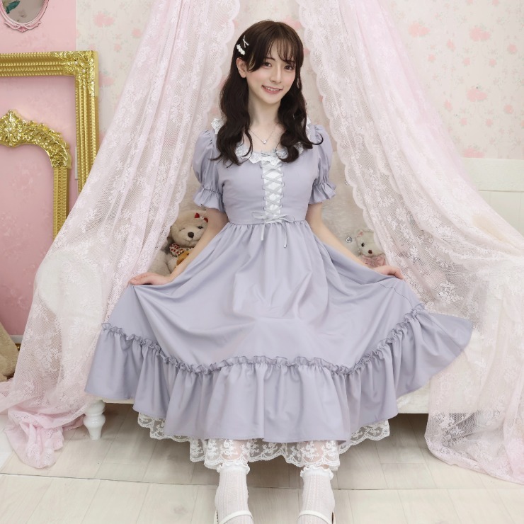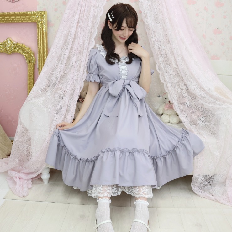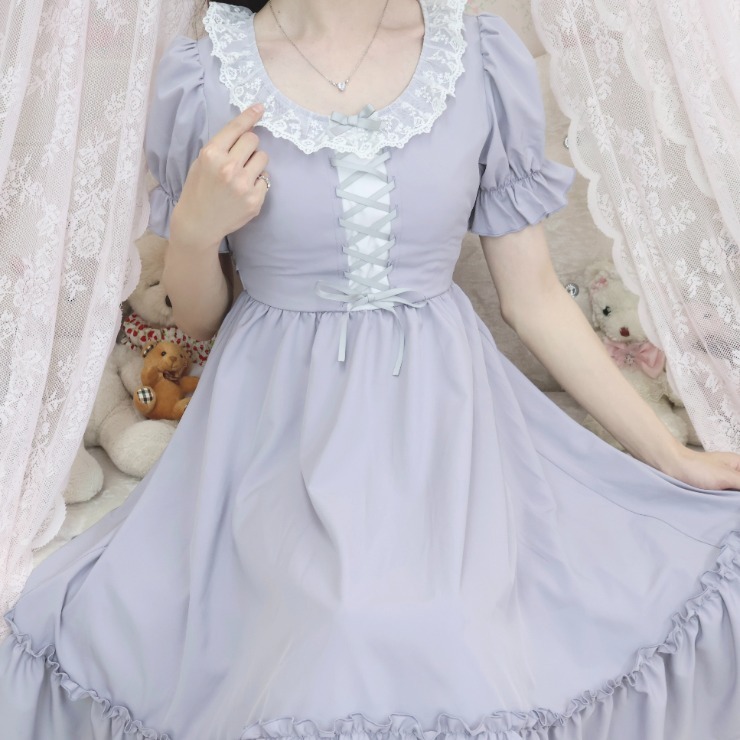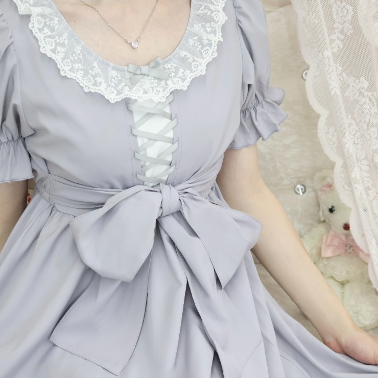 シンプルなカラーだからこそ裾周りのデザインやフロントの細やかなレースアップリボンを引き立ててくれる、高見え間違えなしのアイテムとなっております♪