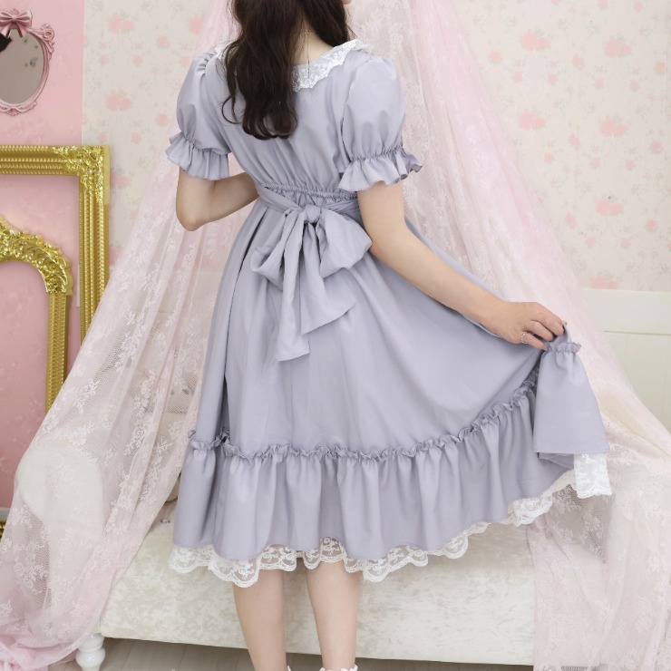 スッキリとした襟元デザインにハイウエスト切り替えで、更にリボンでウエストがしぼれる、シルエットにこだわったワンピースです。