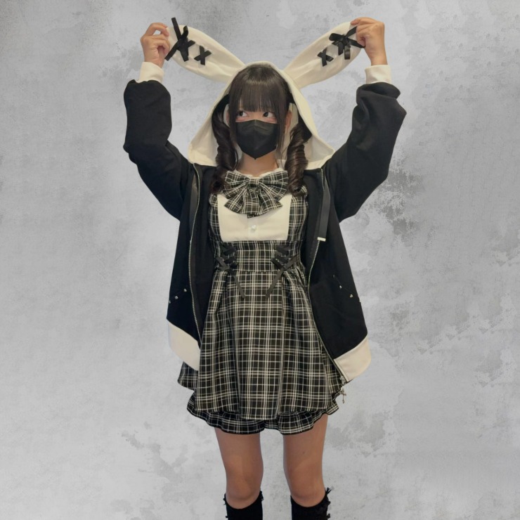 ダークな雰囲気とかわいらしさをMIXし、ブラウスとジャンスカを合わせたようなセットアップに仕上げました♪