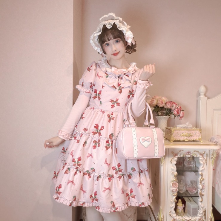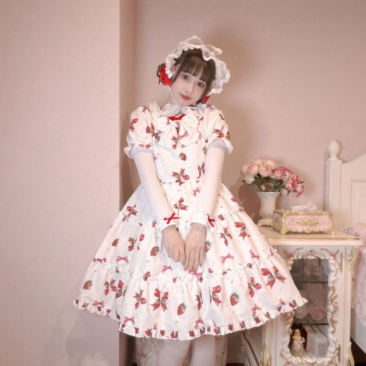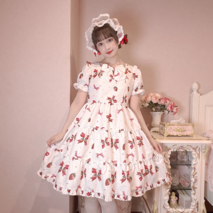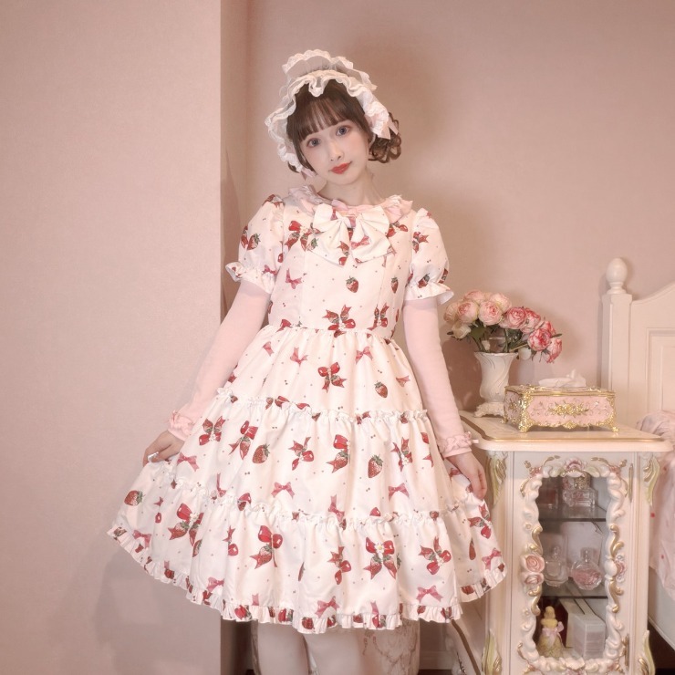 オリジナルのいちごりぼん柄の半袖ワンピース!