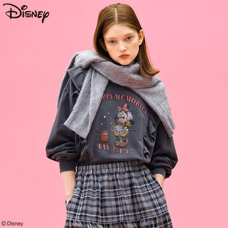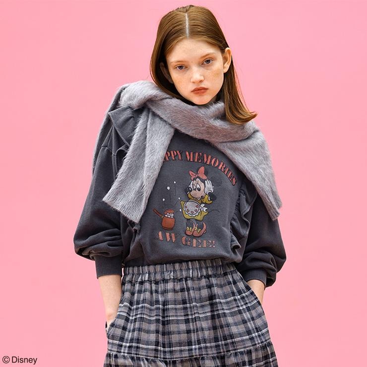 「ミニーマウス」モチーフのピグメント加工フリルスウェットトレーナーです。
