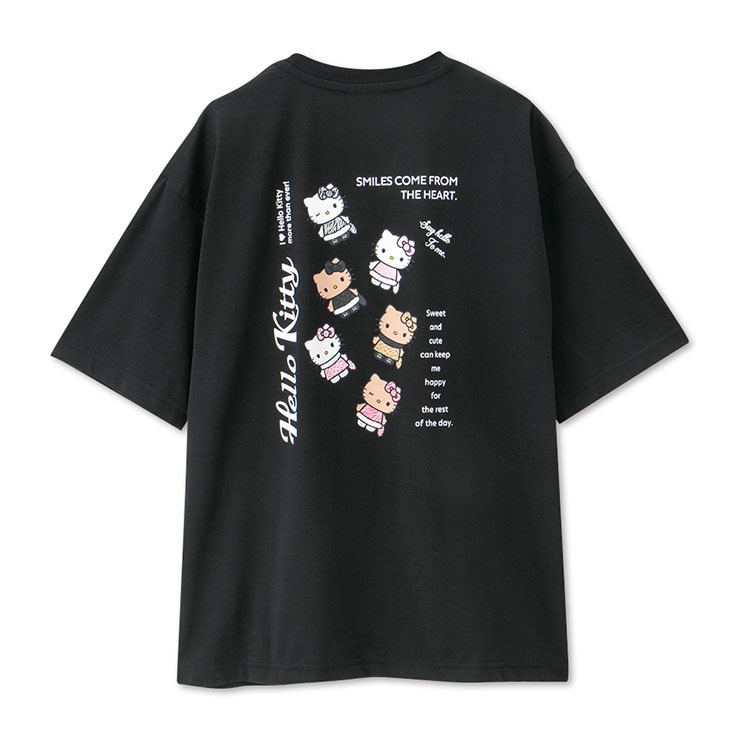 合わせやすい黒ボディに、ギャルデザインのキティちゃんプリントが可愛い半袖Tシャツ。