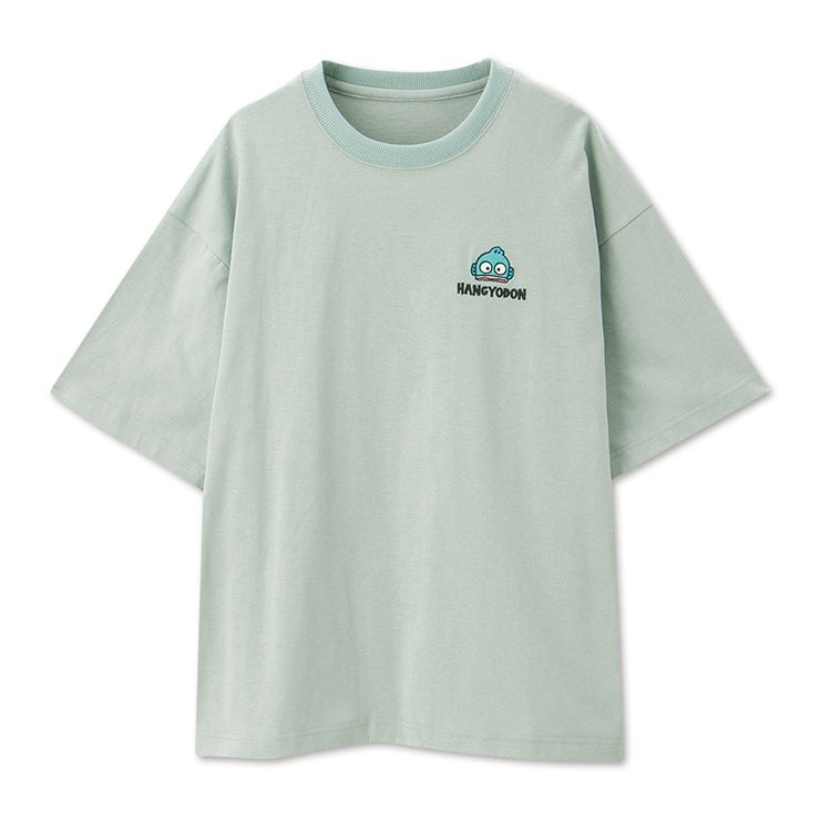 おしゃれなミントカラーのボディに、いろんなポーズのハンギョドンプリントが可愛い半袖Tシャツ。