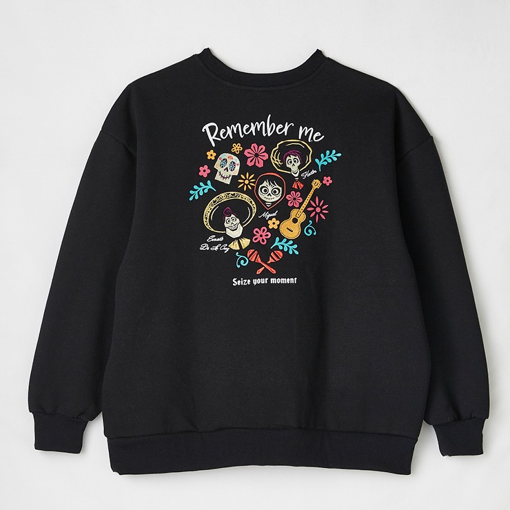「リメンバー・ミー」モチーフの刺しゅうをした、リサイクル綿を使用したスウェットトレーナーです。