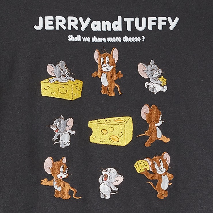 「Tom and Jerry」ジェリーとタフィの刺しゅうをした、リサイクル綿を使用したスウェットトレーナーです。