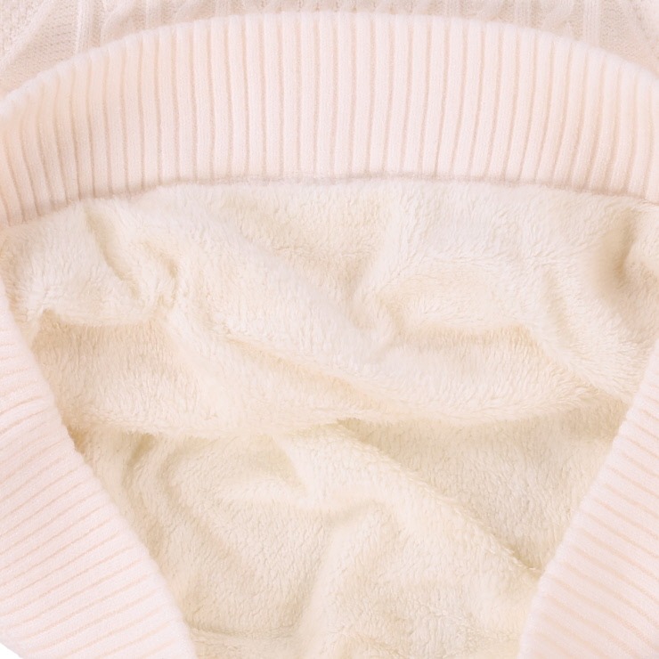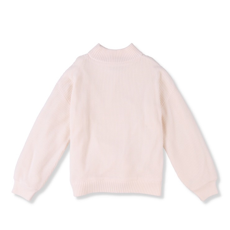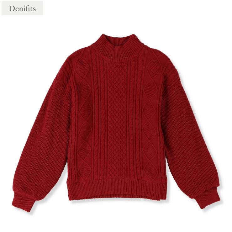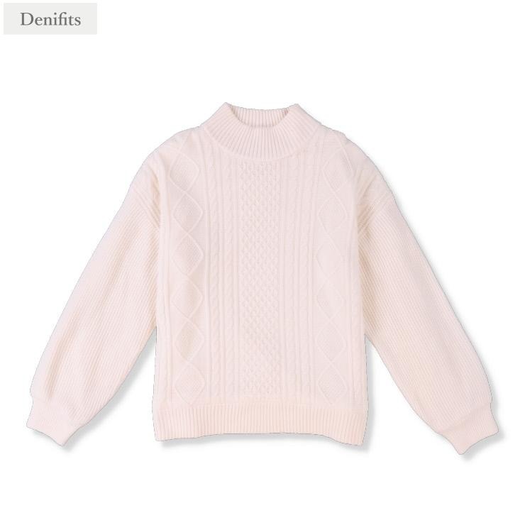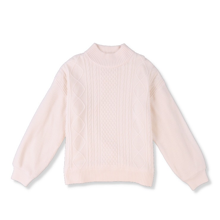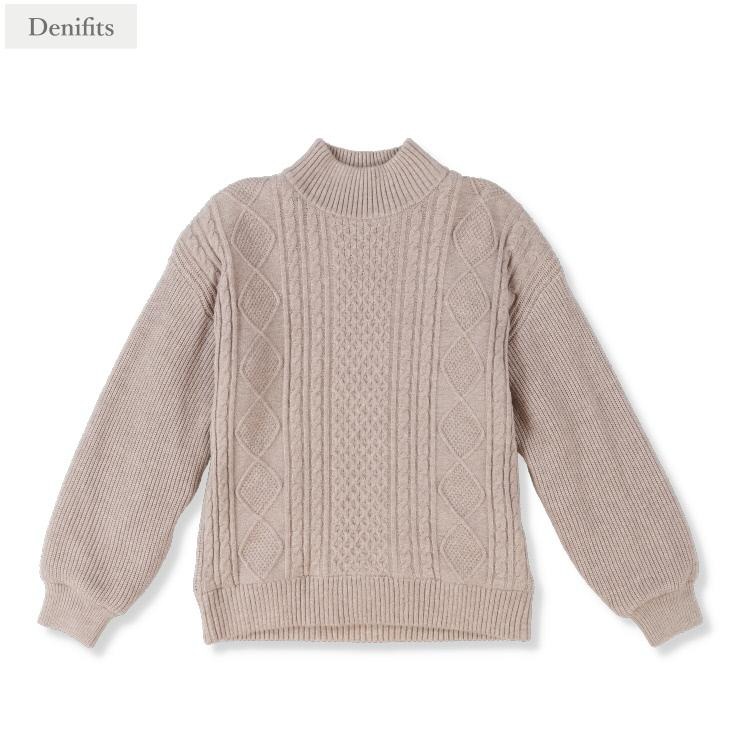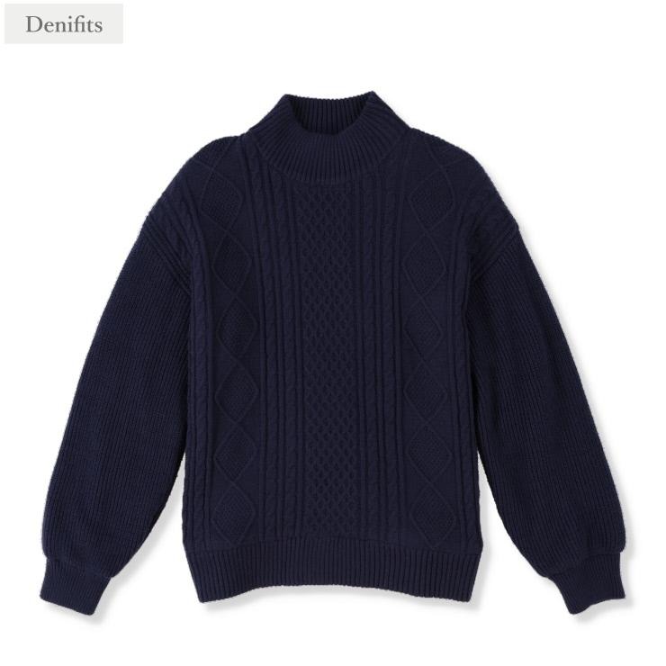 ふんわりもちもちとした糸で編み上げた、ケーブル柄のハイネックプルオーバー。
