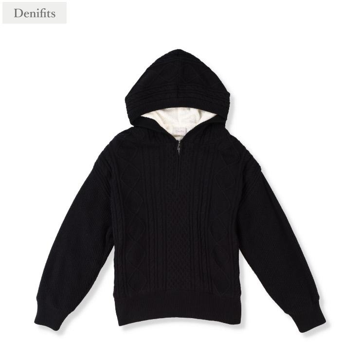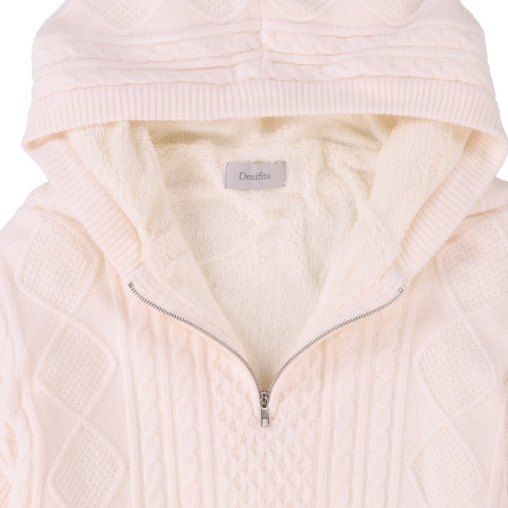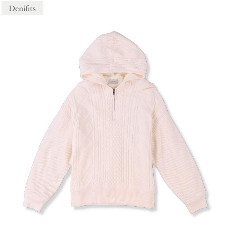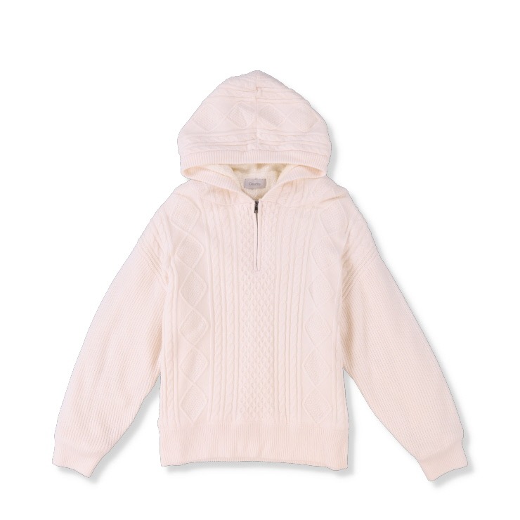 ケーブル柄がかわいいハーフZIPニットパーカ。