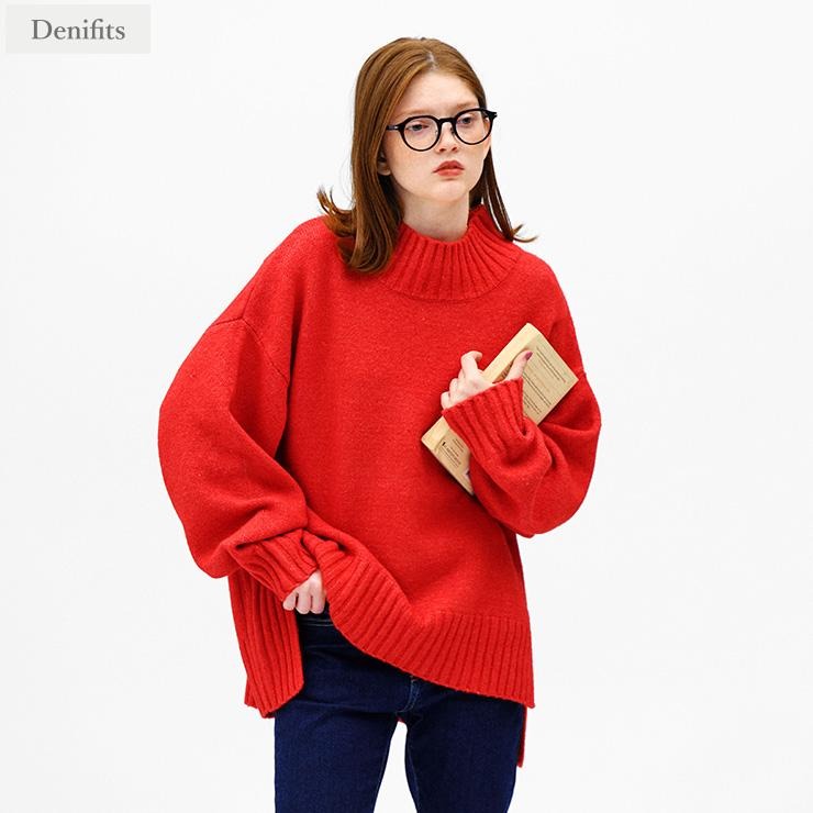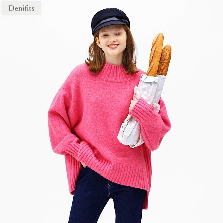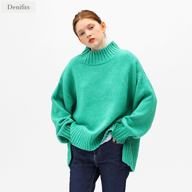 カラーバリエーション豊富なハイネックニットプルオーバー。